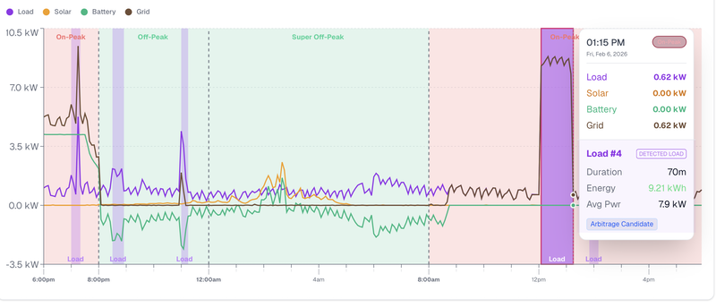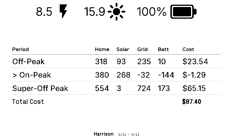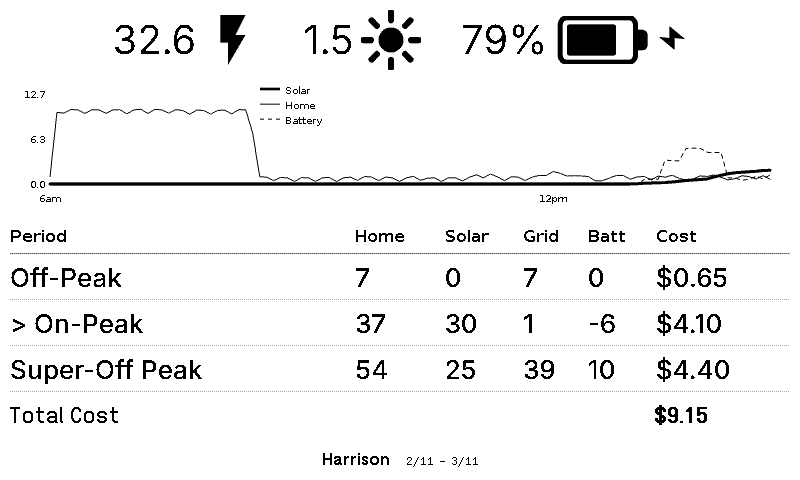 We recently started tracking history for your battery’s state of charge. This improvement allows us to chart your battery’s charge level during the day. Here is a screen showing energy usage along with battery charge level.